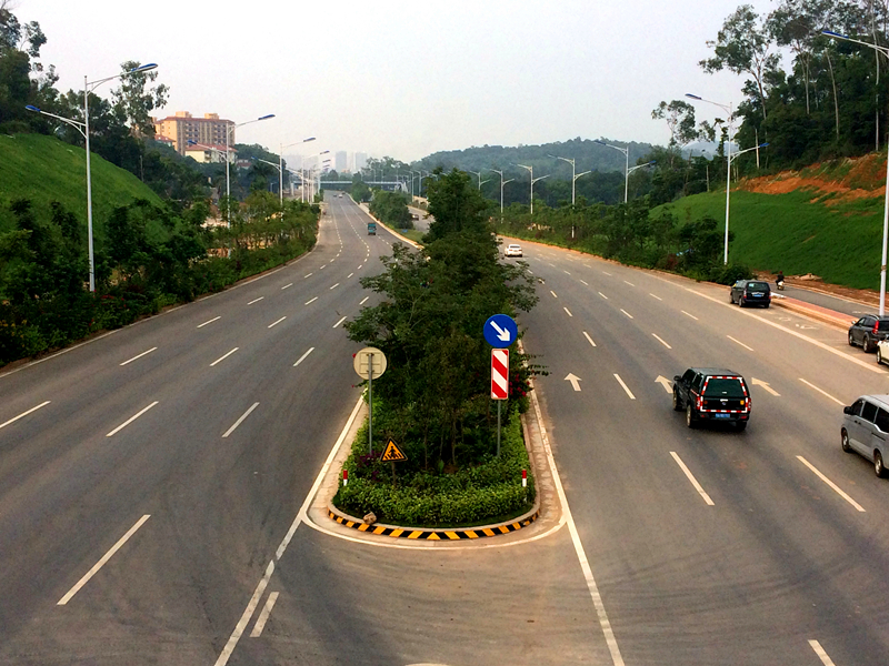 該道路設計標準為城市主干道,道路全長約8.8公里。項目劃分為平丹村~機場高速段Ⅰ標、Ⅱ標兩個標段。設計道路寬度為60米,雙向8車道,橫斷面采用四塊板形式,路面采用瀝青混凝土路面,設計速度為60千米/小時。主要包括道路、橋涵、排水、照明、綠化、交通工程等建設項目。項目總投資9.7億元,其中建安費4.2億元。