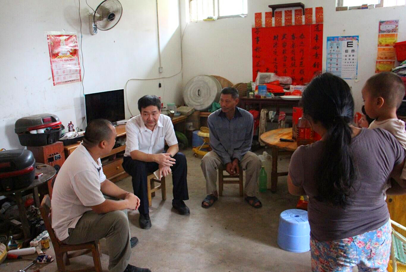 9月7日上午,在河浪村駐村第一書記覃瑞肖和村委會工作人員的帶領下,綠港集團黨委精準扶貧工作組分為6個小組,分別慰問了河浪村的26戶貧困戶,分別給貧困戶送去了大米和花生油等慰問品,提前祝他們中秋節(jié)快樂。在貧困戶韋啟揮老人家里,綠港集團財務總監(jiān)關(guān)月娥親切地與韋啟揮老人拉起了家常?!凹依镉袔桩€地?”“家里甘蔗今年的長勢好不好?”“家里孫兒孫女上學的學習成績好不好?”等等。當了解到韋啟揮老人的兒子通過政府針對扶貧小額免息貸款,積極開展產(chǎn)業(yè)化種植,家里的經(jīng)濟情況在逐步好轉(zhuǎn)時,關(guān)總監(jiān)高興地鼓勵老人的兒子多開動腦筋,創(chuàng)新思路,爭取早日脫貧。在貧困戶梁蔭坎的家中,集團公司總經(jīng)理助理黃麗琴親切地與梁蔭坎及其年邁的母親交談,看到梁蔭坎把自己的小樓房收拾得干干凈凈,了解到梁蔭坎的種養(yǎng)業(yè)豐收在即,為他感到高興,同時告訴他如果在銷路上有什么困難,綠港集團將想辦法幫助解決。在貧困戶梁祖然和梁祖旭家里,看到建筑工人正在給他們家蓋房子時,黃總助關(guān)切地詢問是否申請到危改房補助、補助夠不夠等問題,得知蓋房子能領到20000多元的補助資金時,黃總助心里踏實了好多。在貧困戶盧創(chuàng)旭家里,嘉通公司總經(jīng)理陳志杰與盧創(chuàng)旭一家圍坐在一起,共同探討早日脫貧的道路……這次下村開展精準扶貧工作,工作組組員們對照“八有一超”的標準,認真梳理并記錄了對口幫扶貧困戶家庭的實際情況,為下一步開展精準扶貧工作做好準備。
