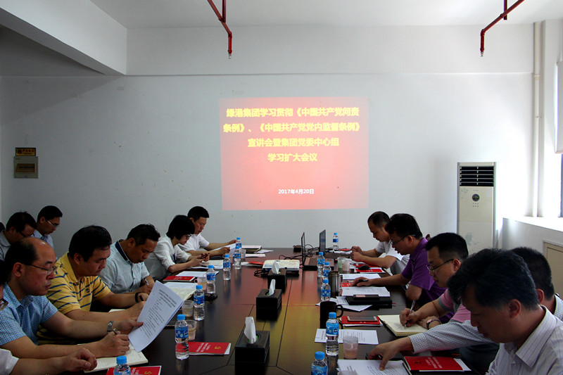 為進(jìn)一步加強(qiáng)廉政文化建設(shè),不斷提高黨員干部廉潔從業(yè)意識(shí),推進(jìn)廉潔從業(yè)教育工作,以黨風(fēng)廉潔建設(shè)新成效促進(jìn)綠港集團(tuán)健康發(fā)展,4月20日上午,綠港集團(tuán)黨委召開學(xué)習(xí)貫徹《中國(guó)共產(chǎn)黨問(wèn)責(zé)條例》和《中國(guó)共產(chǎn)黨黨內(nèi)監(jiān)督條例》(以下簡(jiǎn)稱“兩部條例”)宣講報(bào)告會(huì)暨中心組學(xué)習(xí)擴(kuò)大會(huì)議,會(huì)議由綠港集團(tuán)黨組書記、董事長(zhǎng)楊東主持,經(jīng)開區(qū)紀(jì)工委派駐國(guó)有公司紀(jì)檢組組長(zhǎng)李云岳就“兩部條例”進(jìn)行了宣講,綠港集團(tuán)全體班子成員、集團(tuán)本部中層以上管理人員、子公司領(lǐng)導(dǎo)班子約50人參加會(huì)議。